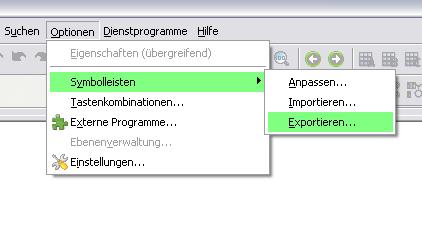 Hallo!Es gibt unter Optionen Symbolleisten einen Menüpunkt zum Import/Export derselben (Bildchen).------------------GrüsseBacki Was ist Elektrizität?Morgens mit Spannung aufstehen, mit Widerstand zur Arbeit gehen, den ganzen Tag gegen den Strom schwimmen,abends geladen nach Hause kommen, an die Dose fassen und eine gewischt kriegen.Das ist Elektrizität![Diese Nachricht wurde von bbe-bac am 29. Feb. 2012 editiert.]