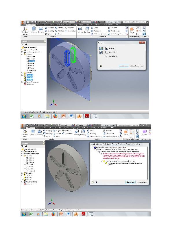 Hallo Ihr erfahrenen Inventornutzer,ich habe hier ein grundlegendes Problem:Mein Bauteil (siehe Anhänge) hat auf einer Seite eine Tasche und zwei Rundungen erhalten.Es gelingt mir nicht die Anordnung aus fünf Taschen mit Rundungen an der XY-Ebene auf die andere Bauteilseite spiegeln. Noch nicht einmal die erste Tasche mit beiden Rundungen kann ich spiegeln.Wahrscheinlich ganz logisch für Euch.Mein Vorgehen und die Fehlermeldungen sind in dem PDF zu sehen.Ich würde mich freuen, wenn mir jemand meinen Denkfe ...