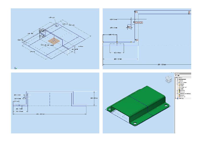 So, auf vielfachen Wunsch , mal meine erste Ausarbeitung.1. Skizze mit dem Profil und der Angabe für die Blechdicke mit Biegeradius an der Flanke des linken Steges.Diese Angaben werden für die Blechdicke und die Biegeradien und die Blechangaben für die Abwicklung benutzt - damit da nichts "durcheinanderkommt“. Außerdem hab ich Maße gern in der Skizze und nicht "irgendwo" in der Parameterliste. Ist auch, IMHO, übersichtlicher...Im Profil sind ein paar Hilfslinien als Konstruktionslinien zu sehen, da wird m ...