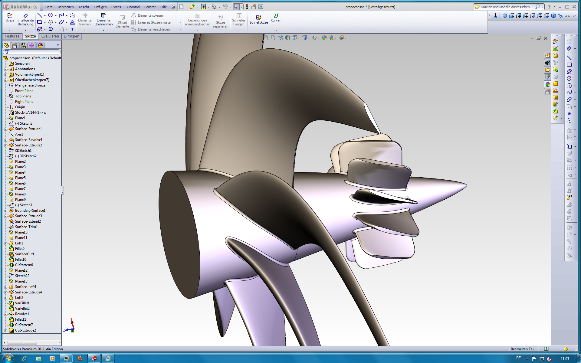 Moin,bin gerade auf eine PDF-Datei im Internet gestoßen: Practical Propeller ModelingDaraus und aus den abgebildeten Daten des Softwareanbieters könnte man eine gute Schiffsschraube in CAD modellieren (auch SWX)...Es gibt im Internet einige SWX Beispiele auch für Schiffspropeller, nur suchen sollte man können und auch wollen...(siehe angehängtes Beispiel)Clinton[Diese Nachricht wurde von Clinton am 09. Feb. 2011 editiert.]
