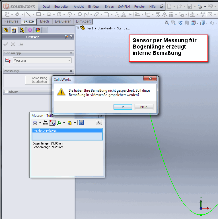 SolidWorks : Bogenmaß an Parabelbogen ?