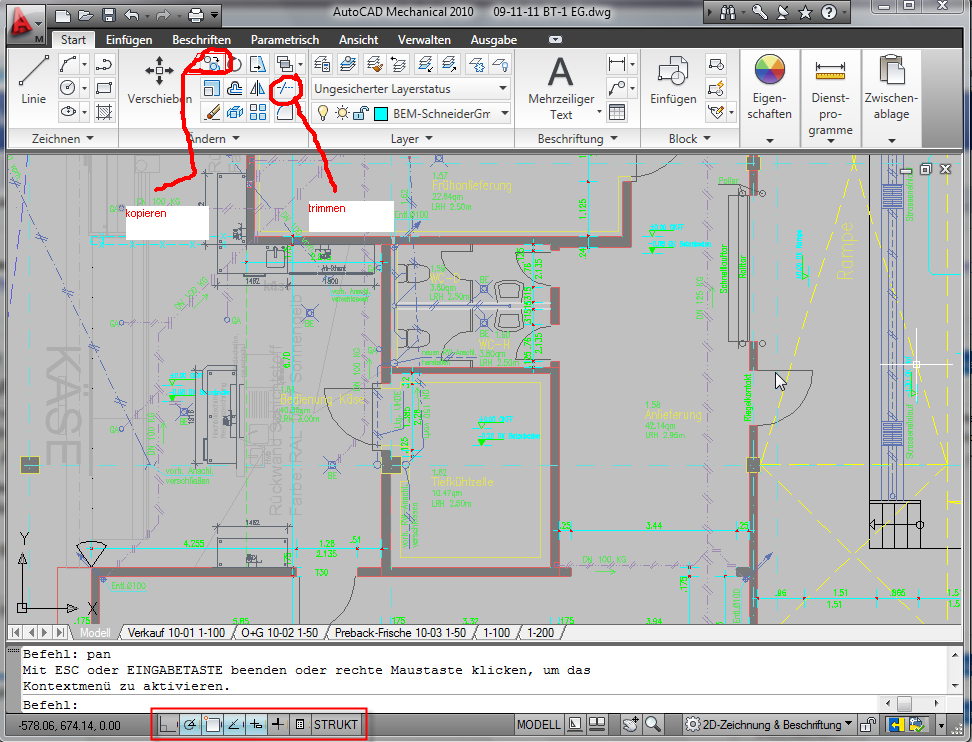 Das ist doch recht einfach. Es gibt 2 Möglichkeiten1. mit der palettenbutton kopieren, den button drücken anschließend eine linie anklicken nach innen verschieben, abstand eingeben und enter, das mit allen vieren machen und dann wie gewünscht einfach mit trimmen wegtrimmen.2. oder mittels dem befehl versetz, abstand eingeben, gewünschte linie anklicken und dann in die richtung klicken in der die linie versetzt werden soll(kann nur eine parallele zu der bestehenden sein)ich hoffe ich konnte dir helfen, und ...
